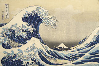 Une étape importante vers la bande dessinée japonaise actuelle sera bien entendu la création au début du 19e siècle du terme "manga" que l'on attribue au dessinateur et graveur Hokusaï, grand maître de l'estampe japonaise, surnommé "le fou du dessin". "Manga" est un néologisme (si vous ne savez pas ce mot, cherchez dans le dictionnaire!! :p) issu de 2 idéogrammes chinois "mahn" et "gah". ces 2 idéogrammes ayant changé avec le temps, "manga" englobe donc la notion "d'image dérisoire" proposée très souvent , mais également celle de dessin grotesque ou amoral (sans morale). A cette époque, l'écriture polymorphe du terme désigne plutôt des ouvrages hybrides mêlant texte et dessin. Hokusaï en fixera la forme et le sens.